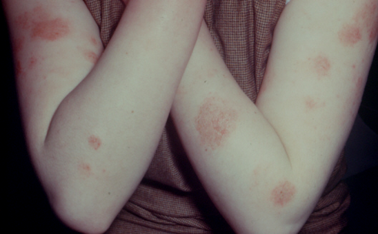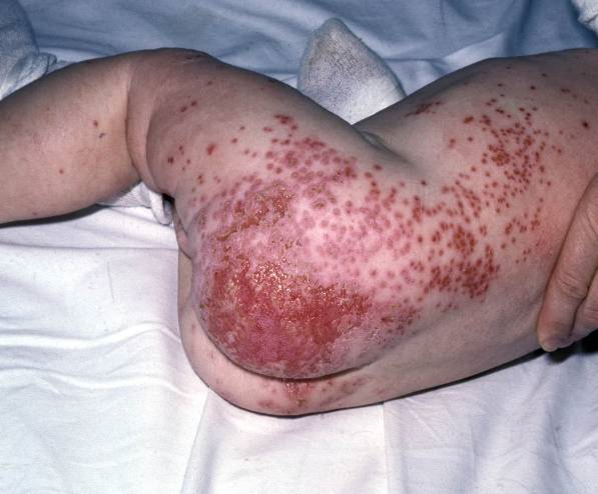 Il-defined papulovesicular lesions, red, itchy, oozing