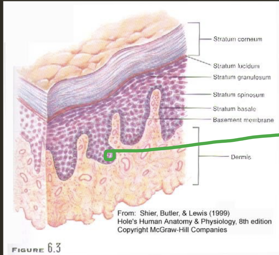 Nomme les 5 couches de l’épiderme et les 2 couches du derme