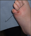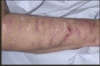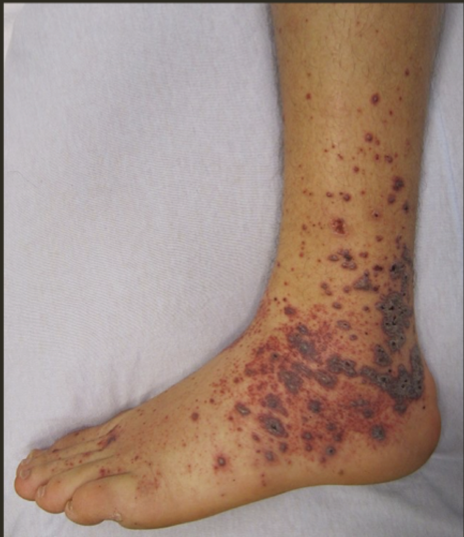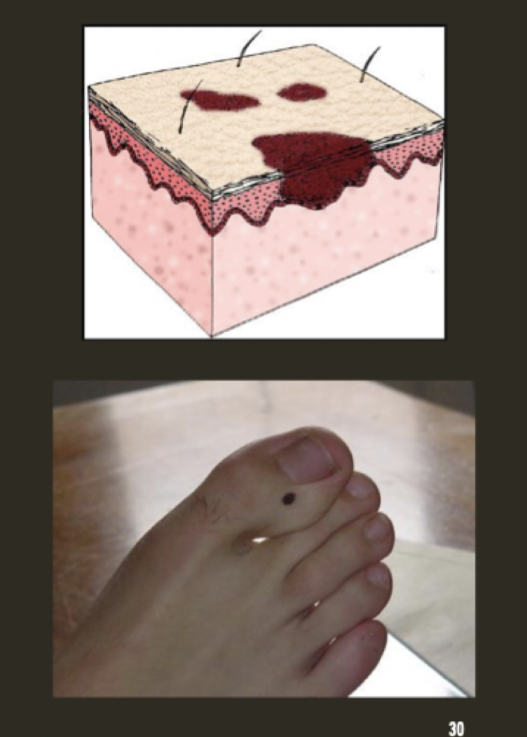 * Large extravasion de sang dans le tissu dermique
