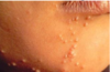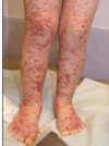o INFECTED - eczema is weeping, crusting or there are pustules with fever and malaise