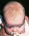 Onset of atopic eczema is usually in the first year of life. It is, however, uncommon in the first 2 months, unlike infantile seborrhoeic dermatitis, which is relatively common at this age