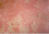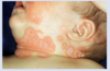 Affected skin is erythematous, oedematous with prominent weeping and crusting