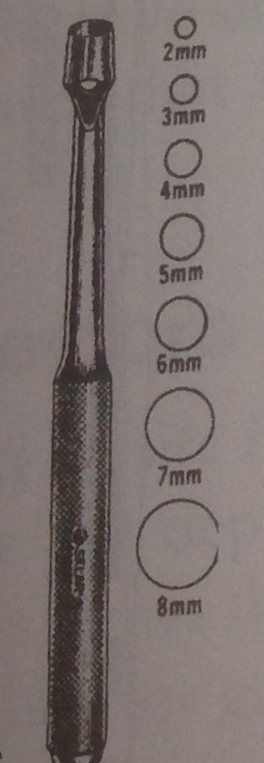 Keyes cutaneous punch; removes small circular sections of skin for microscopic studies