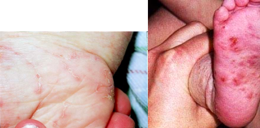 A 15-month-old infant has itchy lesions on the scalp, neck, palms and soles (as shown below). The most likely diagnosis is:
