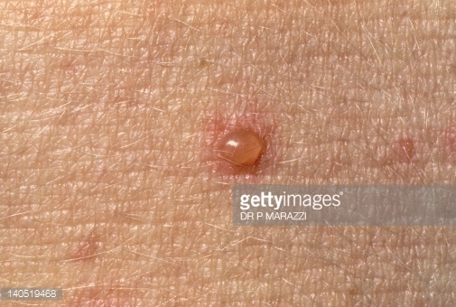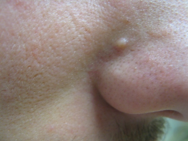 An elevated, solid lesion up to .5cm in diameter, color varies.