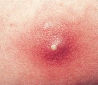A circumscribed collection of leukocytes and free fluid that varies in size.