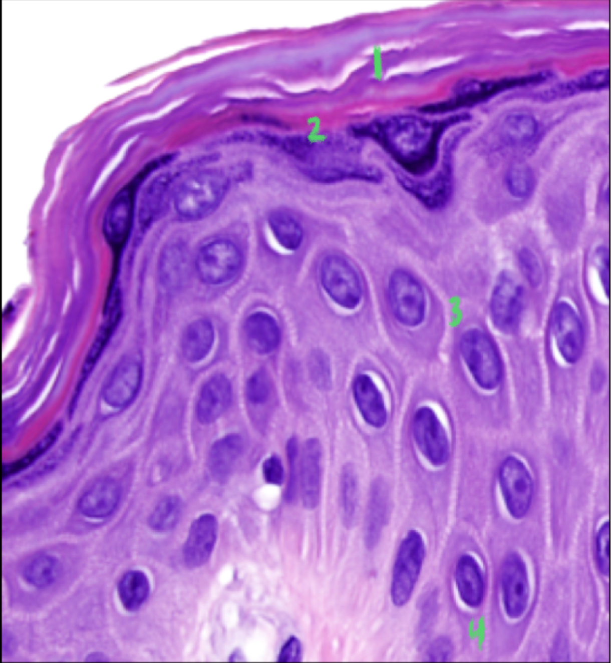 What are the four layers of the keratinocytes and what is the function of each?