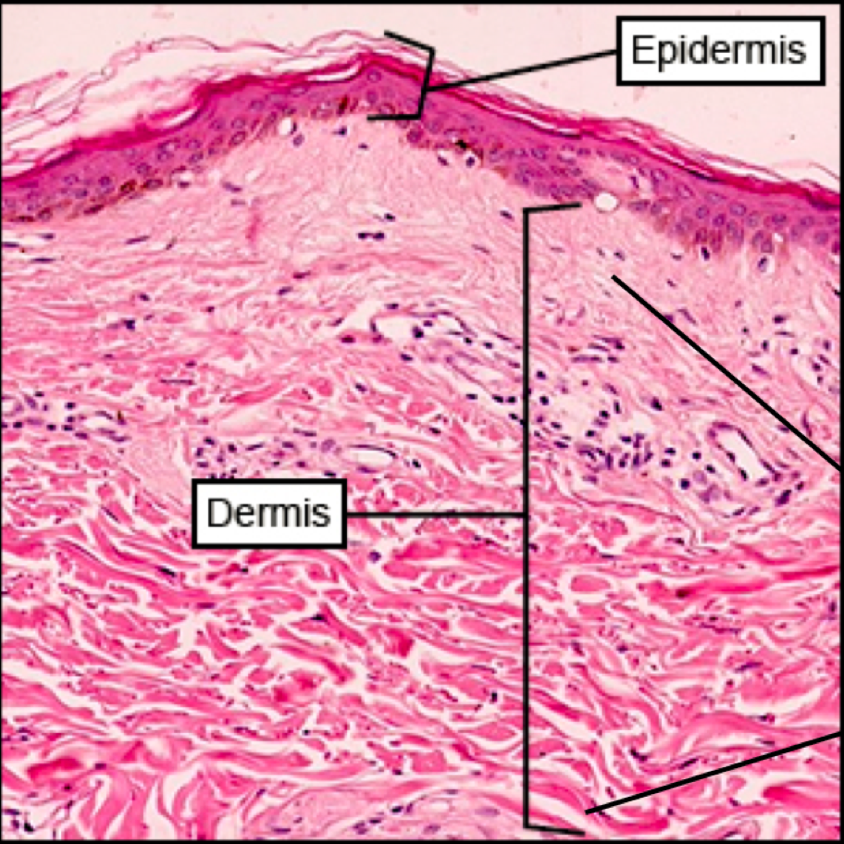 What are the two layers of the dermis and how do they appear?