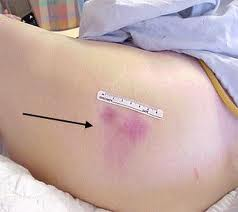 intact skin over bony prominence- persistent, non-blanchable redness may fee warm or cool to the touch, tissue is swollen and congested; pt may report discomfort