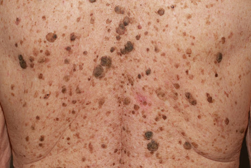 small in size (0.5 - 2cm) patches of rouch, scaly skin with varying color