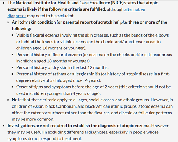 Atopic eczema is a chronic, ithcy, inflammatory skin condition that can affect people of all ages although 70-90% present under 5 yrs with a high incidence in 1st year