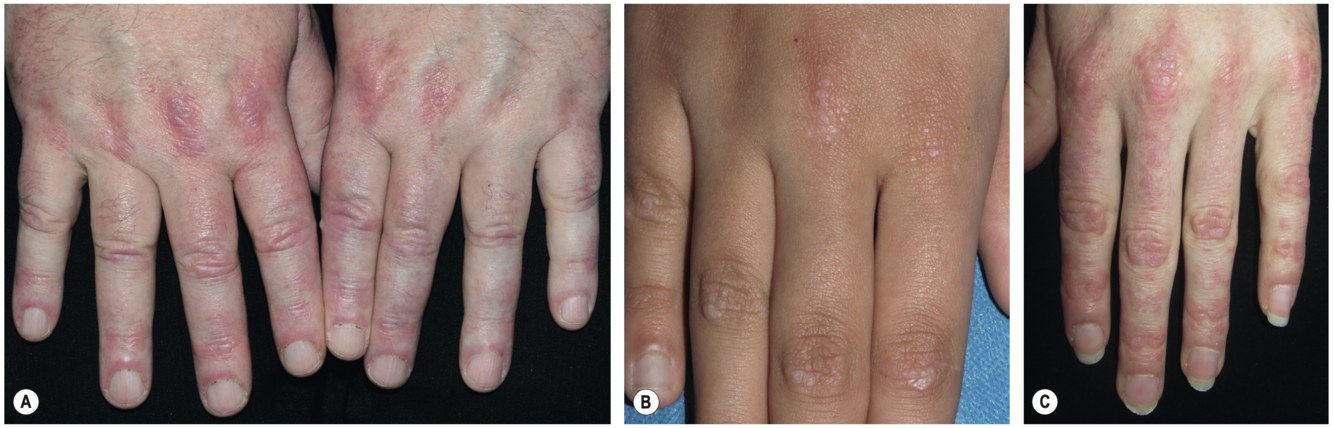 Papules de Gottron (MCP, IP)