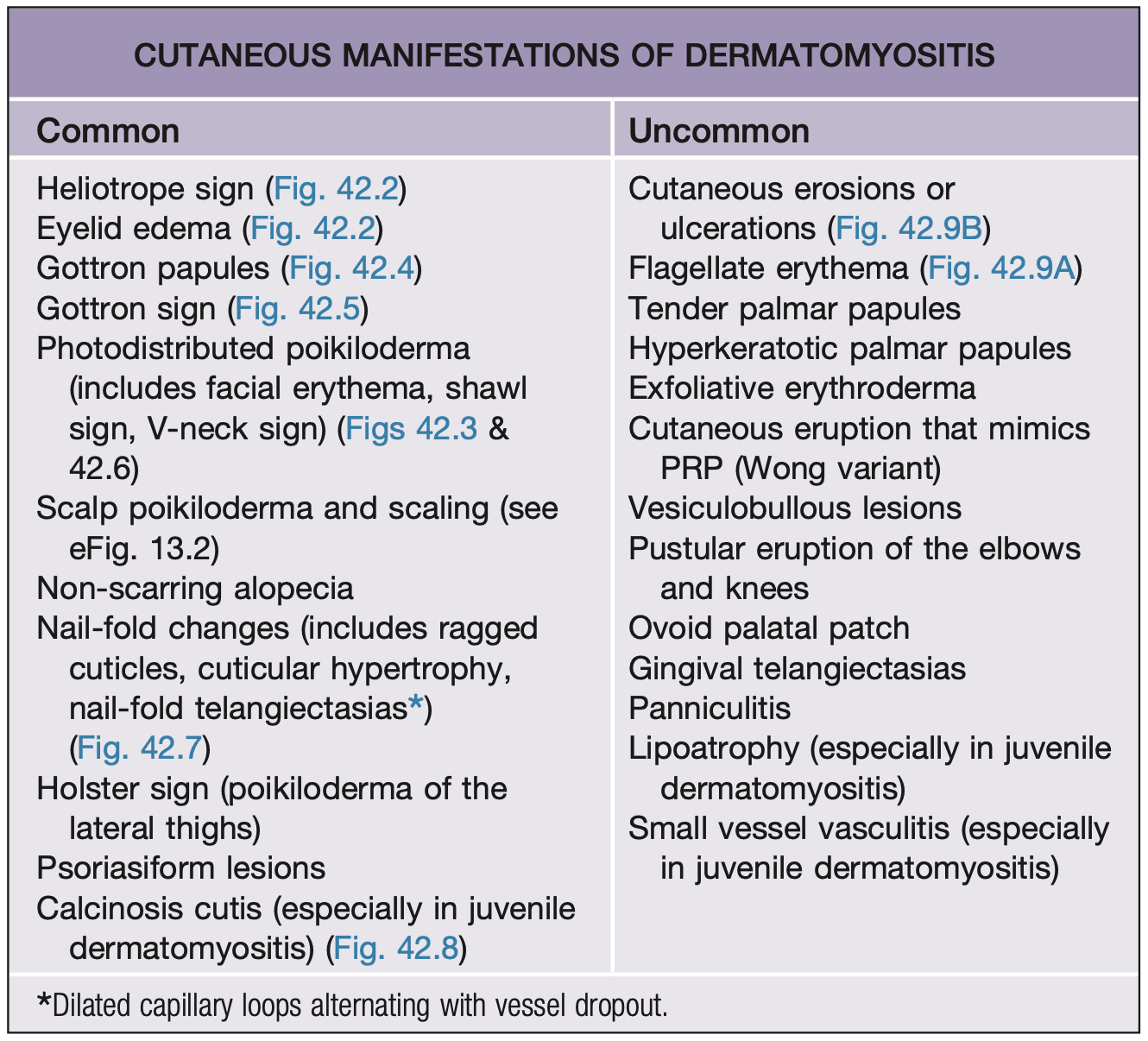 érythème périunguéal et télangiectasies
