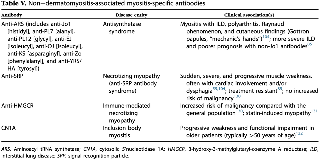 association avec MI-2 ou absence anticorps identifiables panel myosite