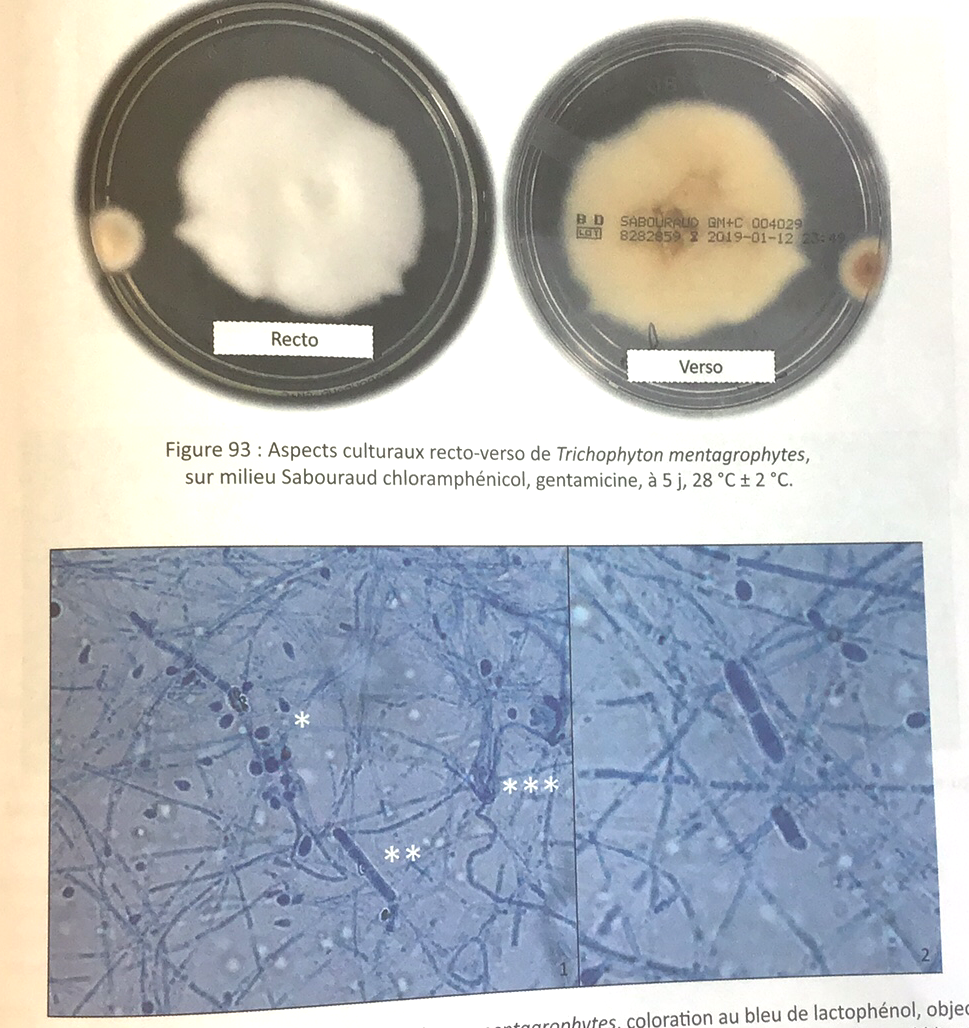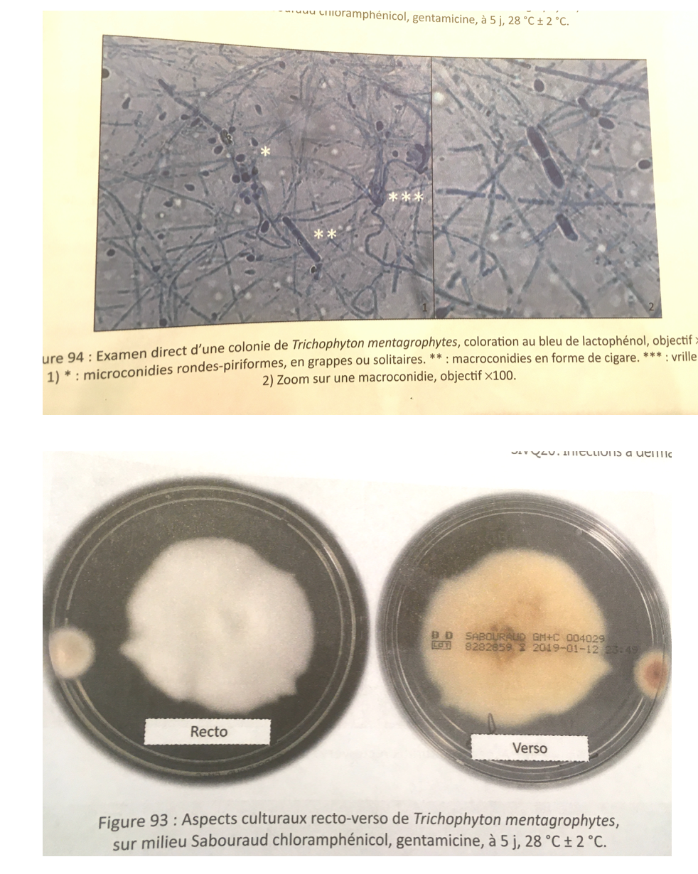 Décrire micro et macroscopiquement T. mentagrophytes