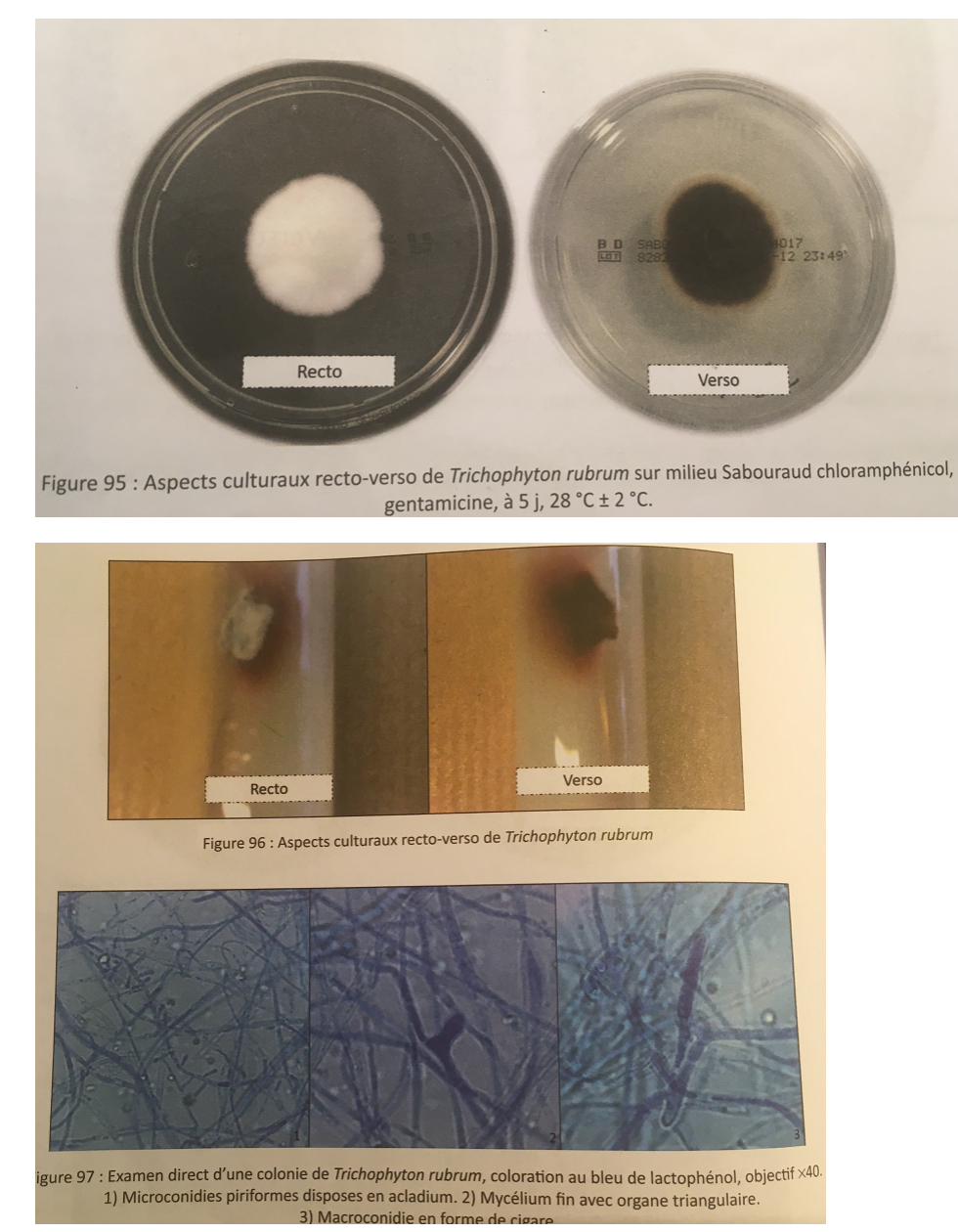 Décrire de facon micro et macroscopique T. rubrum