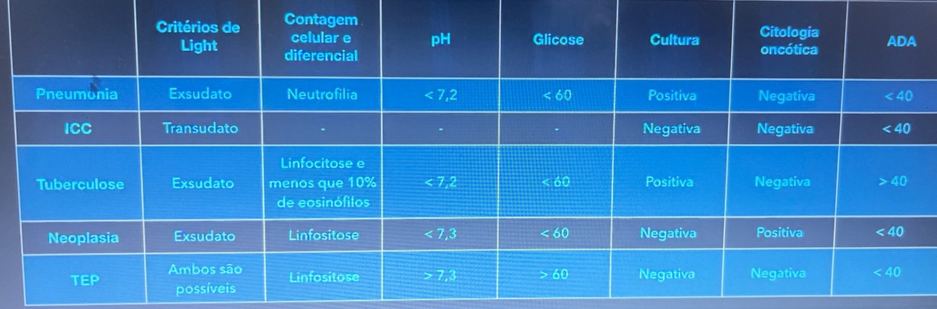 Compara basicamente a relação de proteína e DHL do sangue com a do líquido pleural