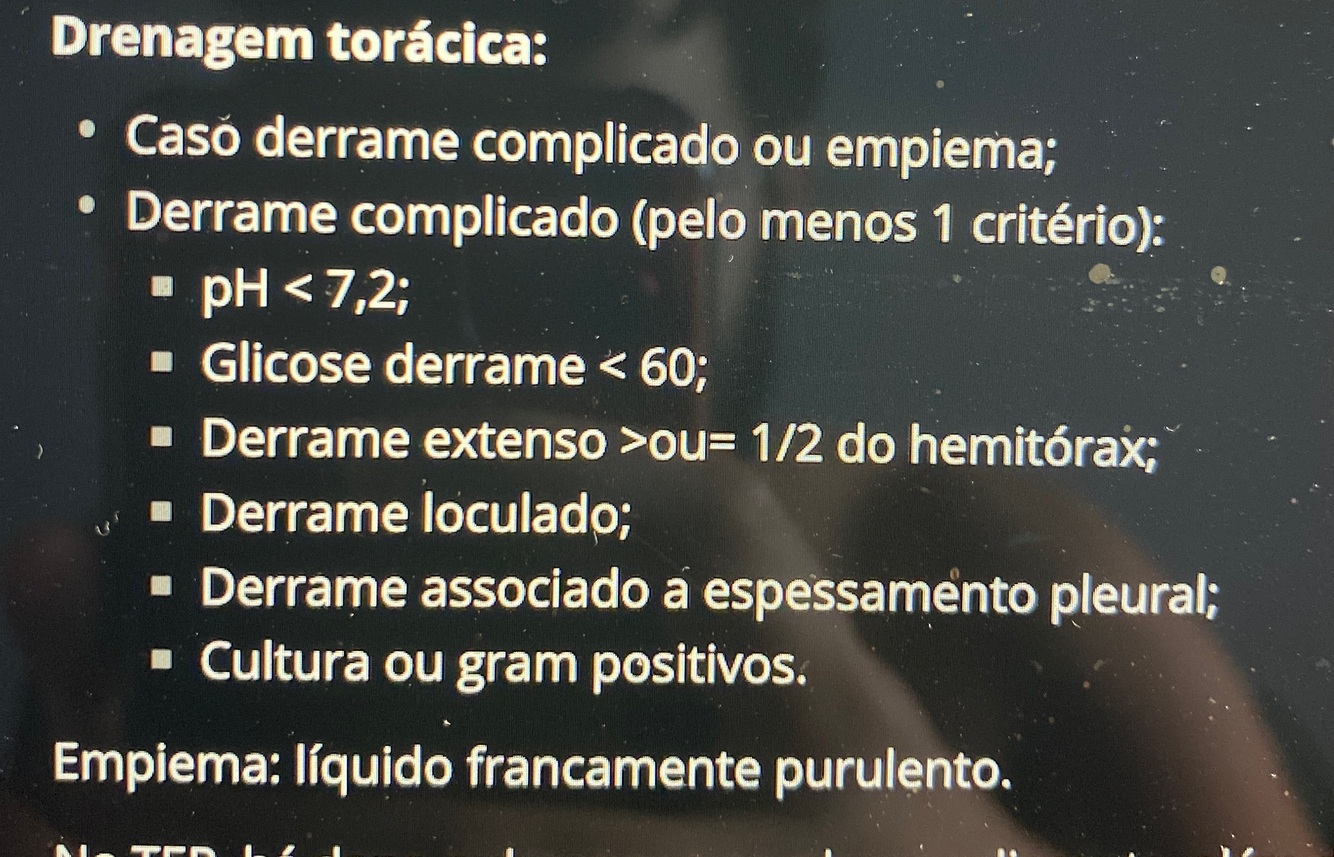 Sugere: parapneumonico complicado, malignidade ou tuberculose