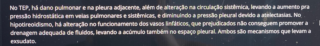 TEP e hipotireoidismo causam exsudato ou transudato?