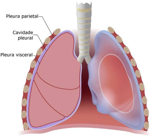 A pleura visceral, que recobre os pulmões, e a pleura parietal, que recobre a face interna da parede torácica, o diafragma e o mediastino.