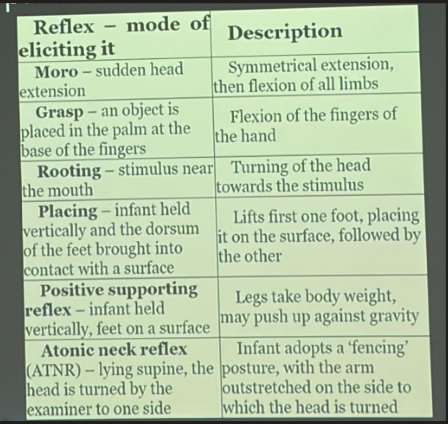 Edad de aparición y edad de desaparición del reflejo de moro en recién nacido: