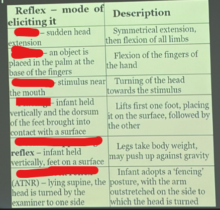 Edad de aparición y edad de desaparición del reflejo de prensión palmar en recién nacido: