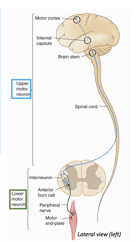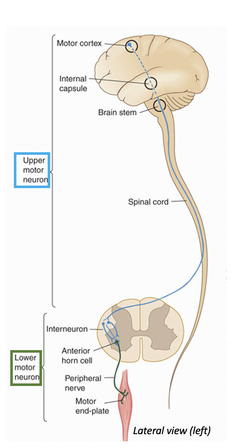 Upper motor neurone (UMN):