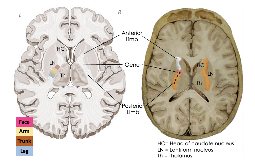 How is somatotopic organisation maintained at the level of the internal capsule?