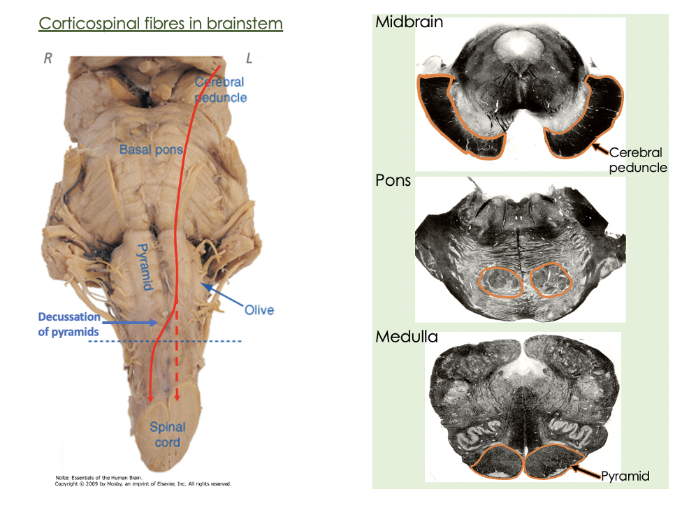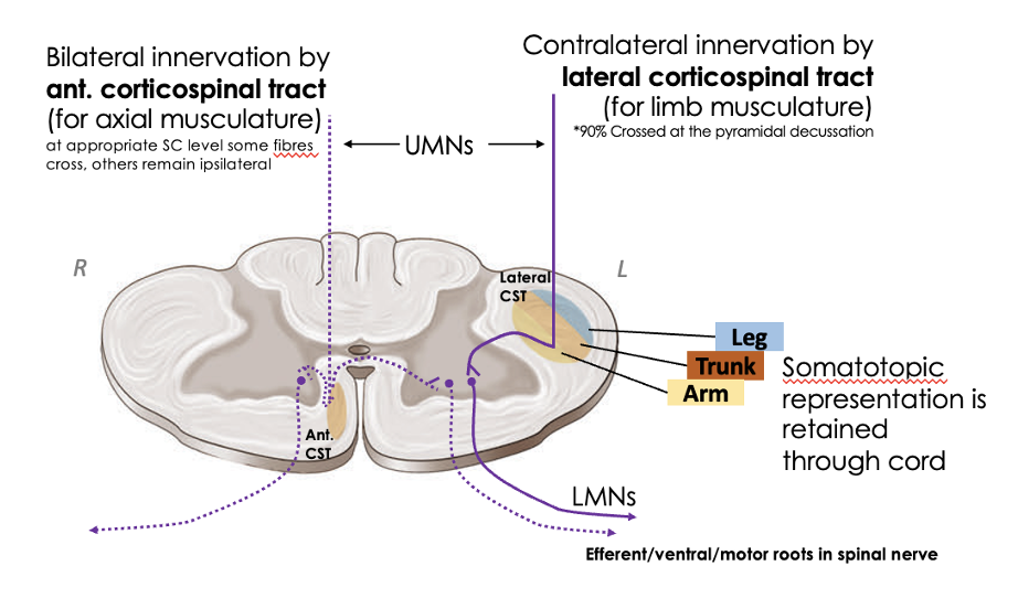 Describe the main pathway of the corticospinal tract