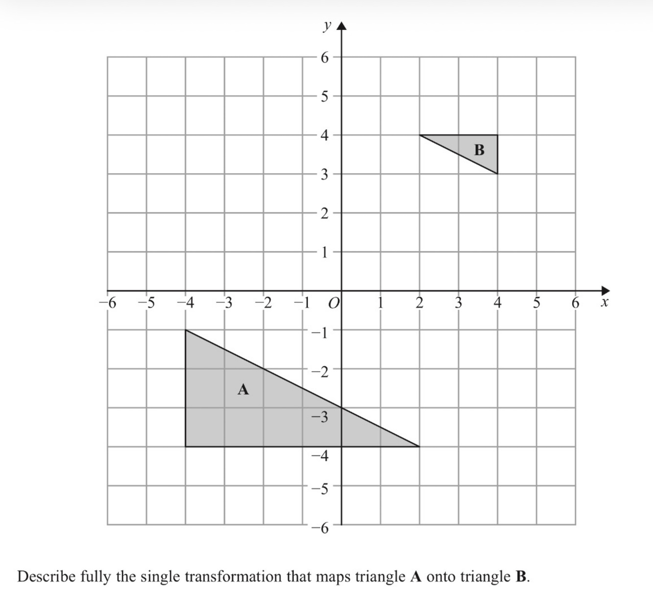 need to give equation of mirror line - shapes are congruent under reflection (as well as under translation and rotation)