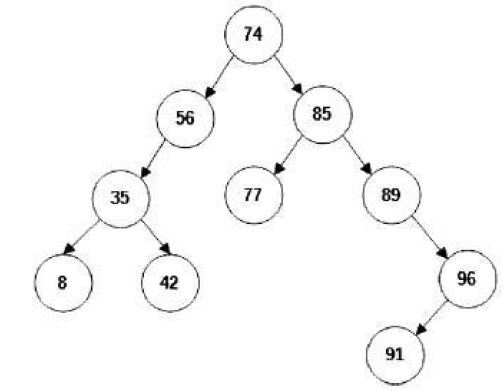Depois ele diz que são retirados todos os elementos de A na ordem que se apresentam e são inseridos em uma árvore binária de busca (lembre-se que uma árvore binária de busca é aquela em que todos os nós da subárvore esquerda possuem um valor numérico menor que o da raiz e os nós da subárvore direita