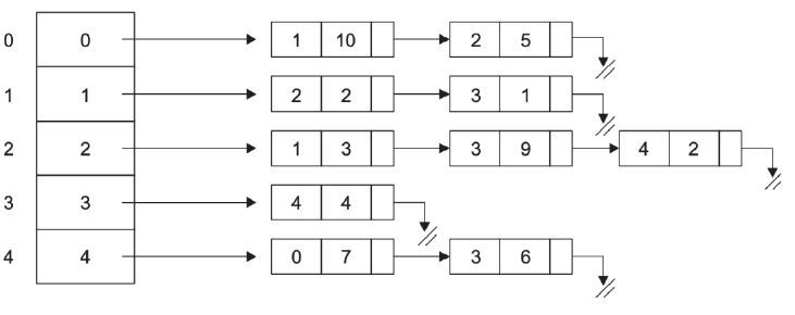 Esta estrutura representa cinco localidades indicadas por 0, 1, 2, 3, 4 com as rotas e as respectivas distâncias entre