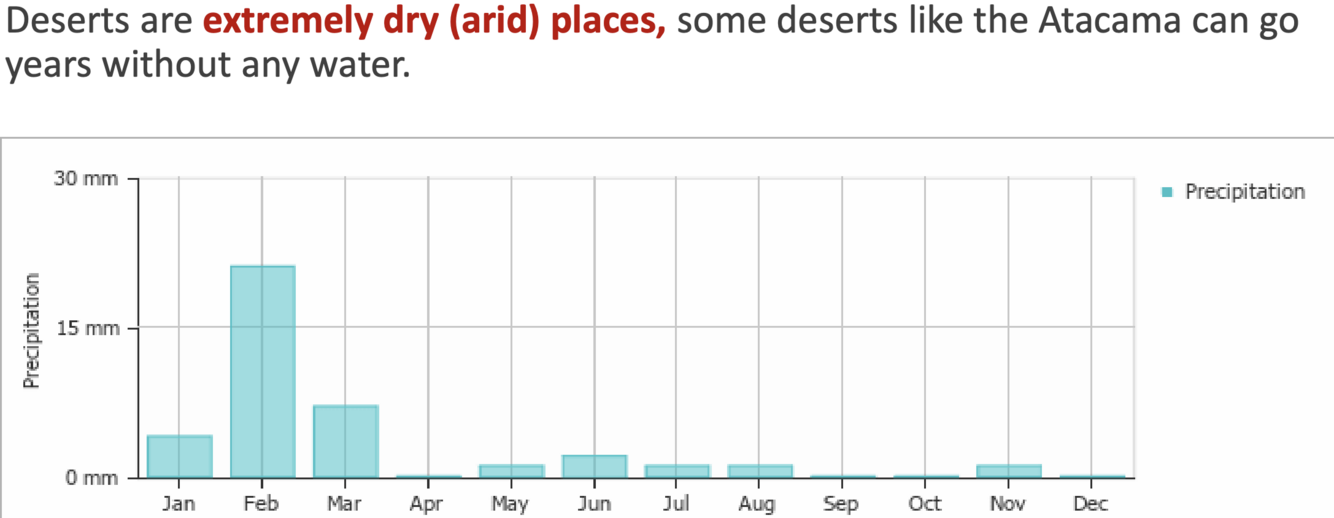 What term describes the extremely dry conditions of deserts?