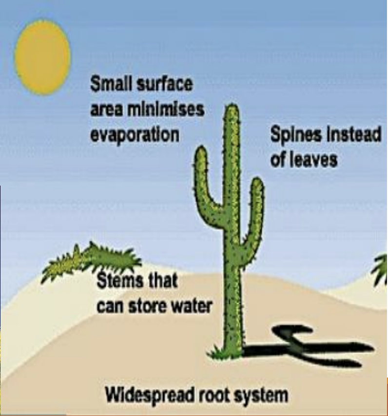 What adaptations do succulents (eg cacti) have for survival in deserts?
