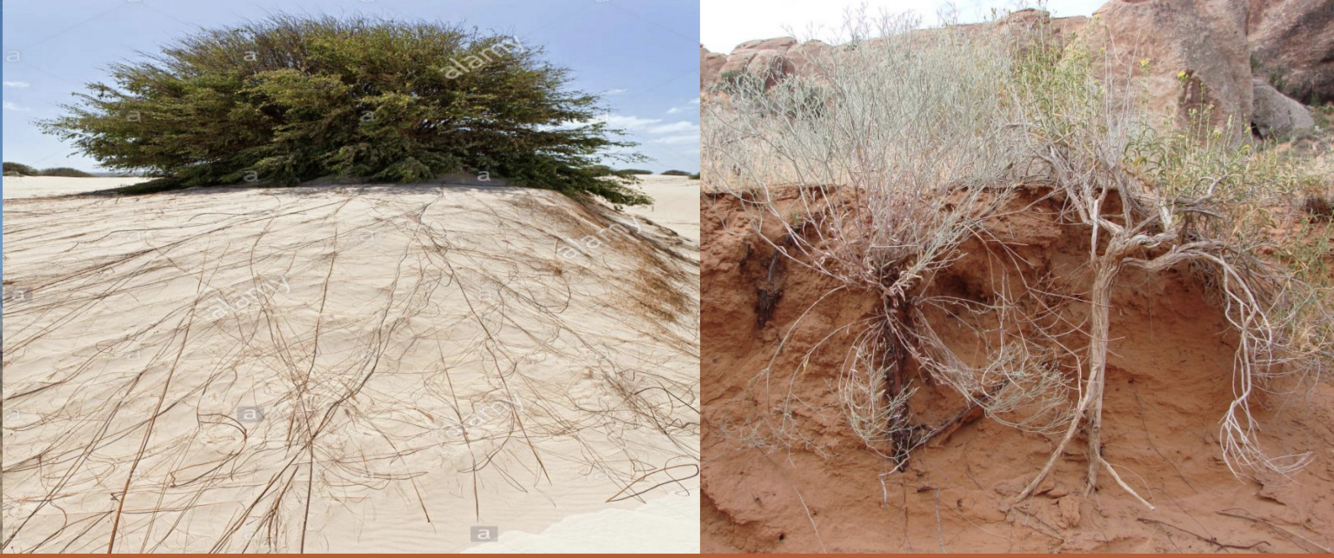 What is the purpose of long and wide roots in desert plants?