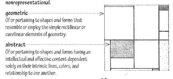 Of or pertaining to shapes and forms not representing natural or actual objects.