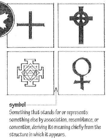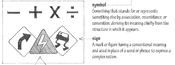 Something that stands for or represents something else by association, resemblance or convention, deriving its meaning chiefly from the structure in which it appears.