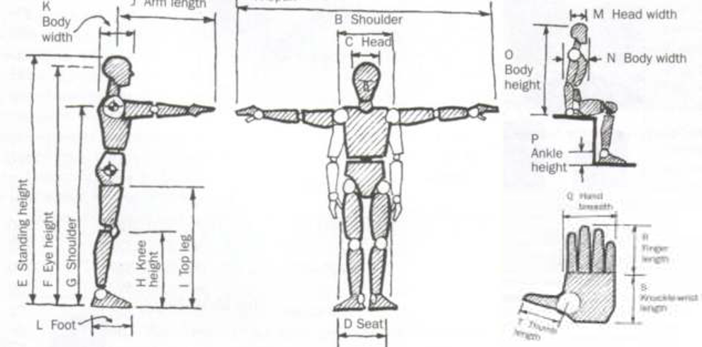 Anthropometrics (Anthro-pom-metrics) is the study of measuring and describing the physical characteristic of the human body like Height, Weight and body proportions. It helps us to understand and compare the size and shapes of people