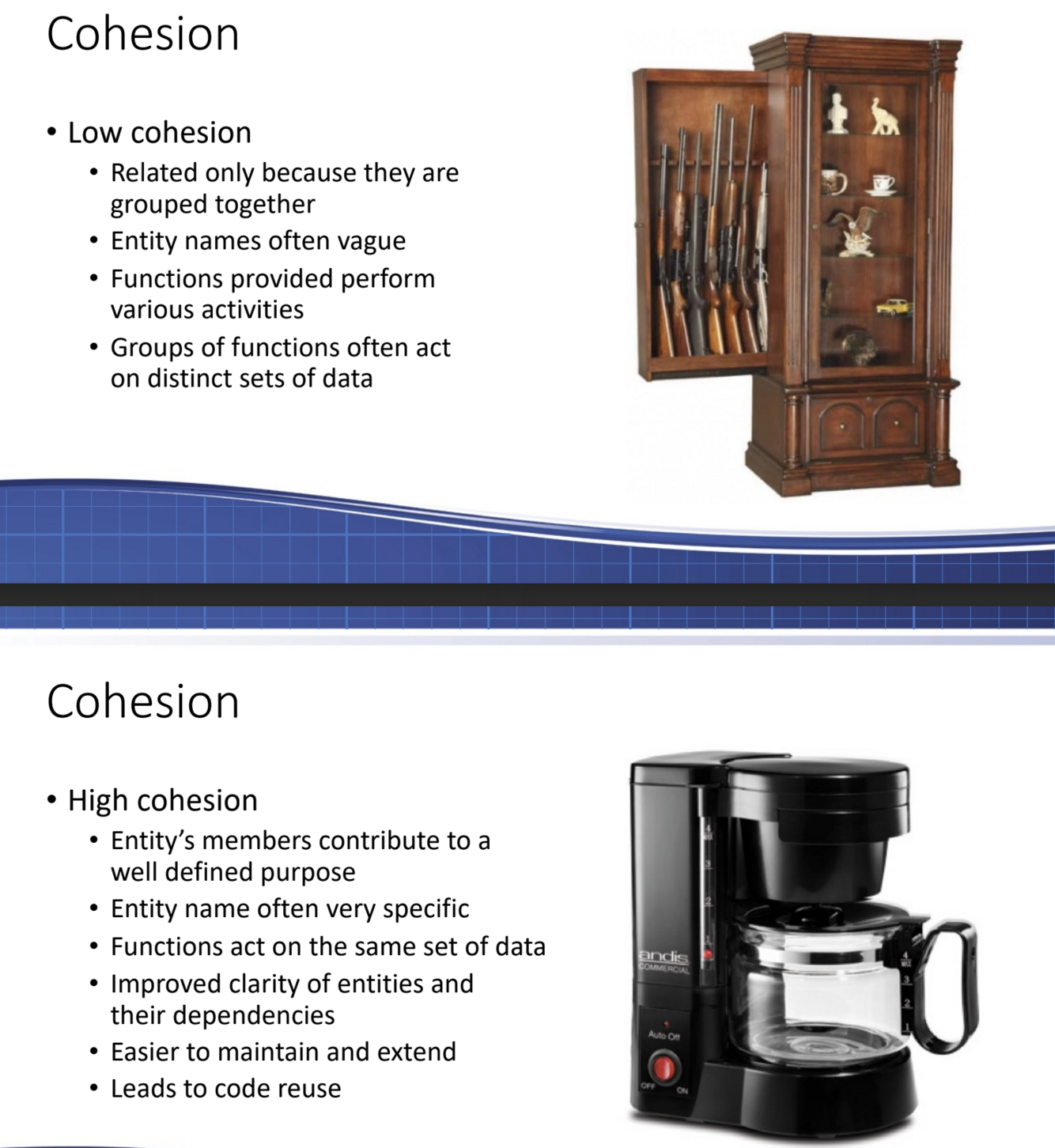 What is the difference between low cohesion and high cohesion?