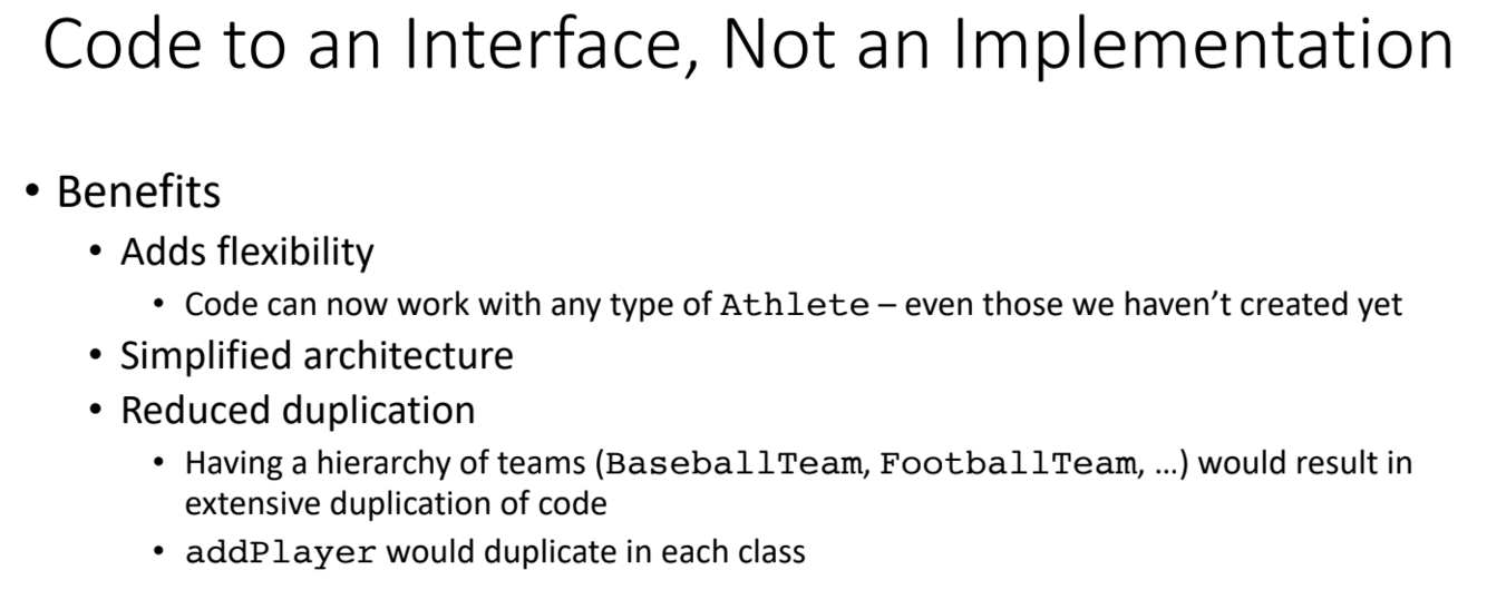 What are the benefits of “Code to an Interface, Not an Implementation”?