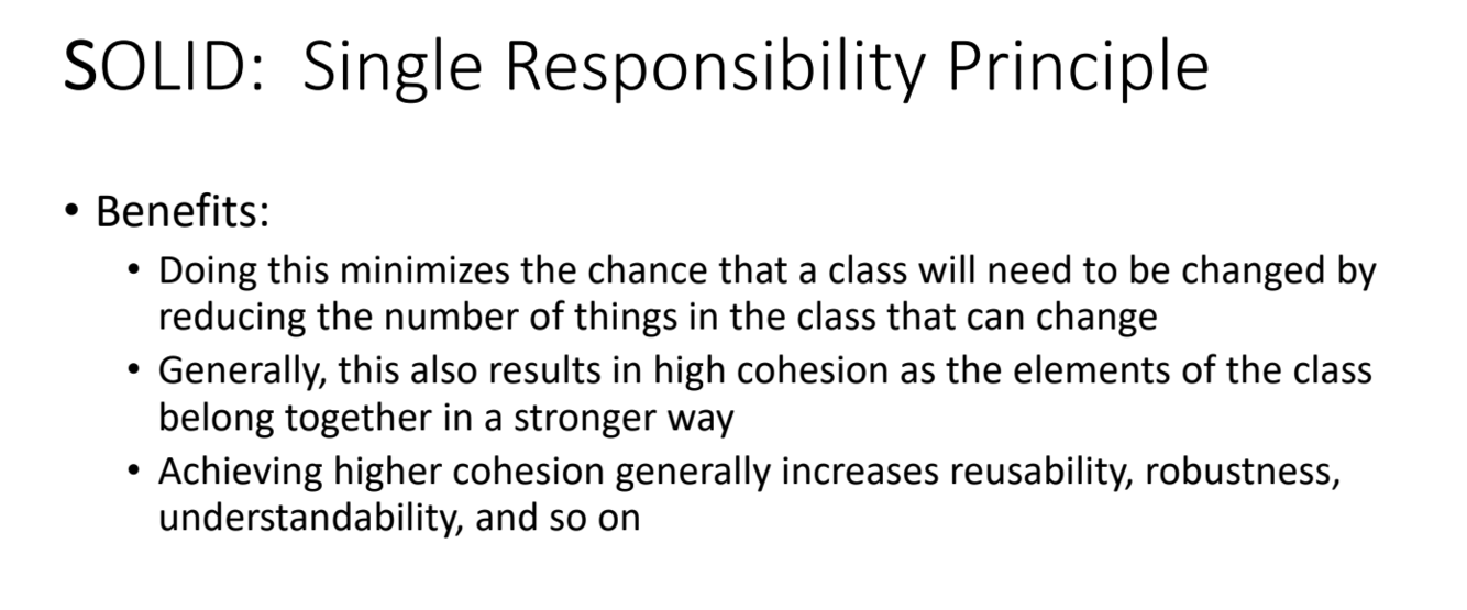 What are the benefits of the SOLID: Single Responsibility Principle?