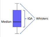 Ein Boxplot zeigt eine Verteilung basierend auf median, IQA, Whiskers und Ausreißern
