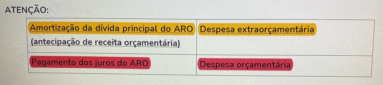 Amortização da dívida principal do ARO X pagamento dos juros do ARO