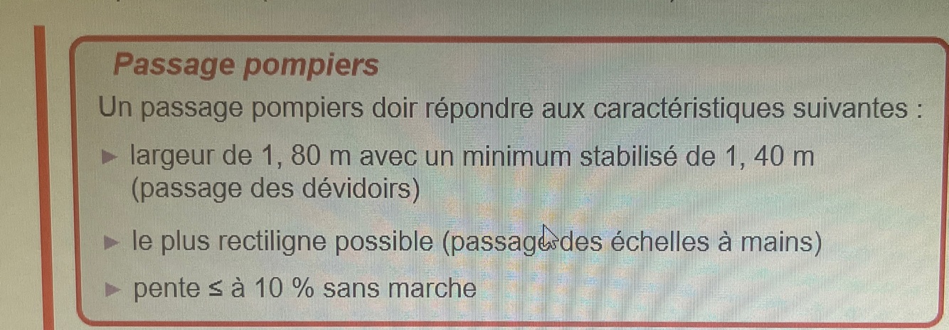 Passage pompiers / voies engins / voies echelles / espaces libres