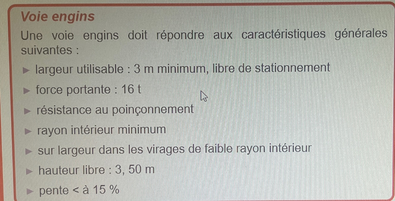 Passage pompiers et/ou voies engins et/ou voies echelles en fonction de leur classement.