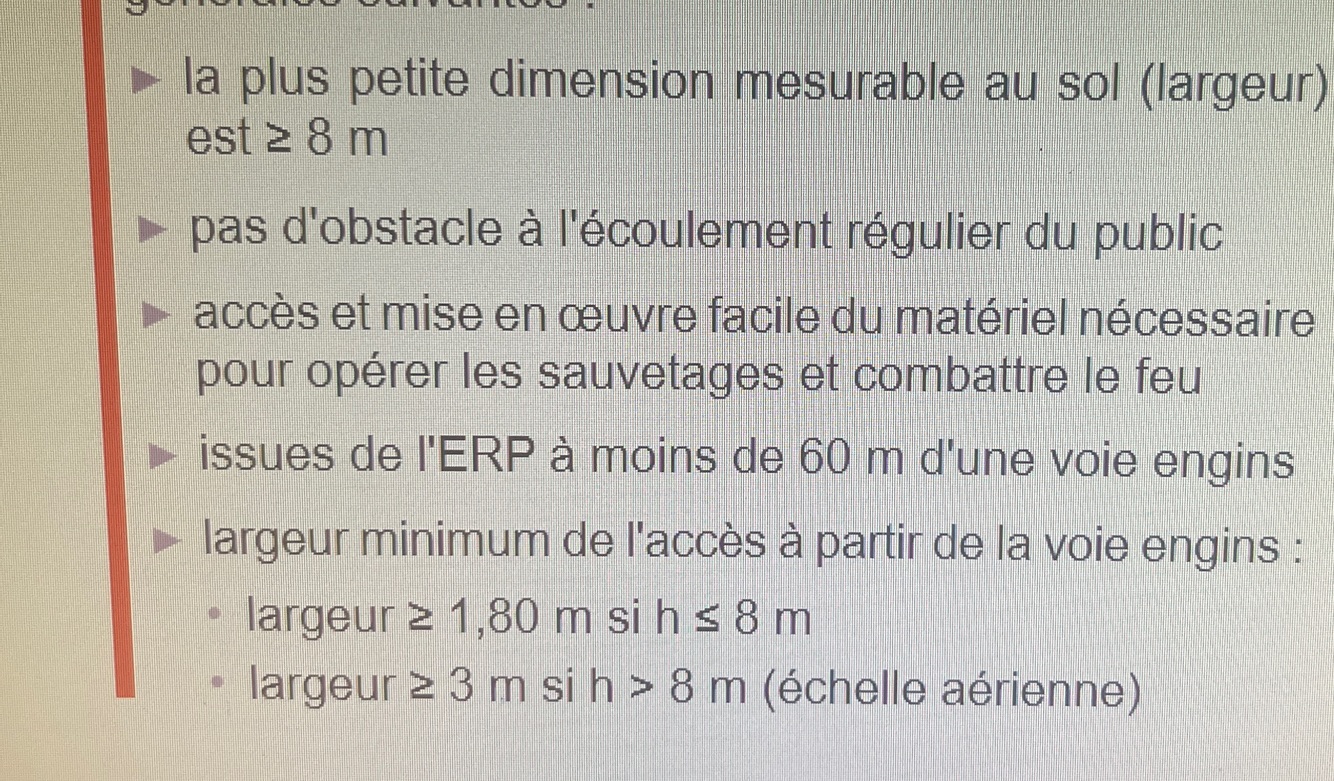 Desserte voie echelles si >8m plancher bas // ou pour les autre a minima voie engin ou passage pompier