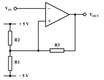 The solution to the problem of noise on the signal causing multiple transitions at the output during the time that the signal is crossing a threshold is to have a threshold that changes after a transition has been made. This creates an upper and lower threshold.