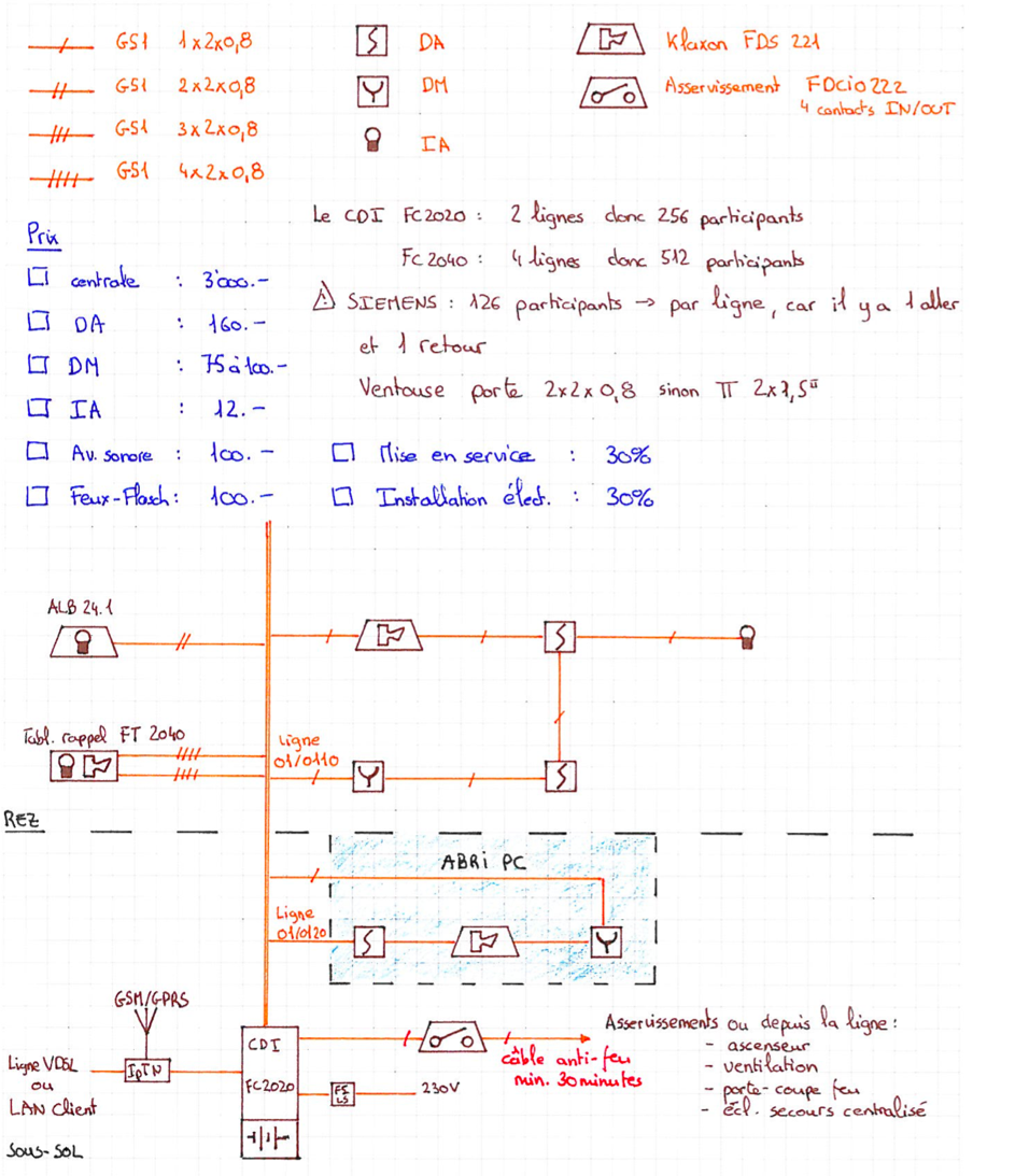Dessiné un schéma de principe de détection incendie