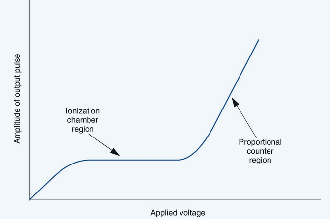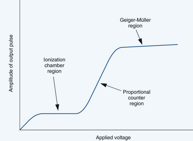 When the voltage becomes sufficient to cause complete collection of all of the charges produced, the curve enters a plateau called the