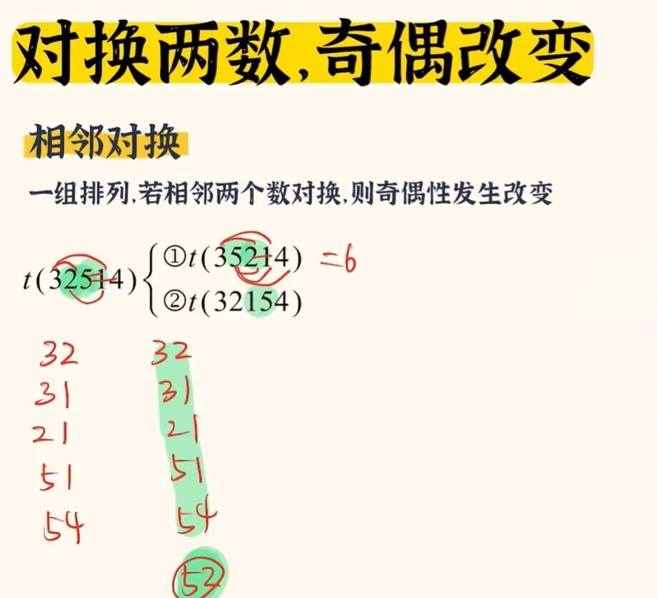 解释:奇数与偶数相差1,改变一个数,逆序数改变1。